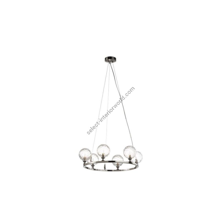 Chandelier 6 lights with hand-cut Italian crystal spheres. Lighting item that diffuses the light with great effect in the surrounding environement creating a warm and welcoming atmosphere.