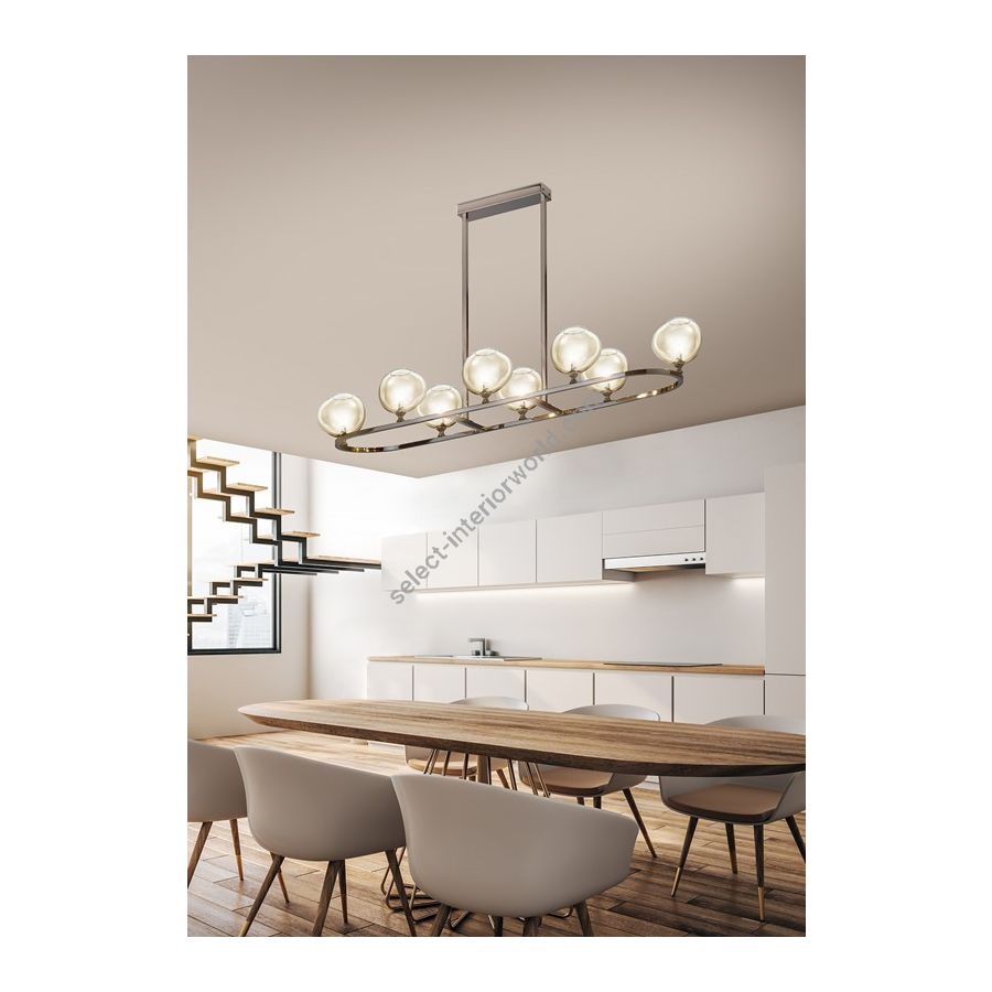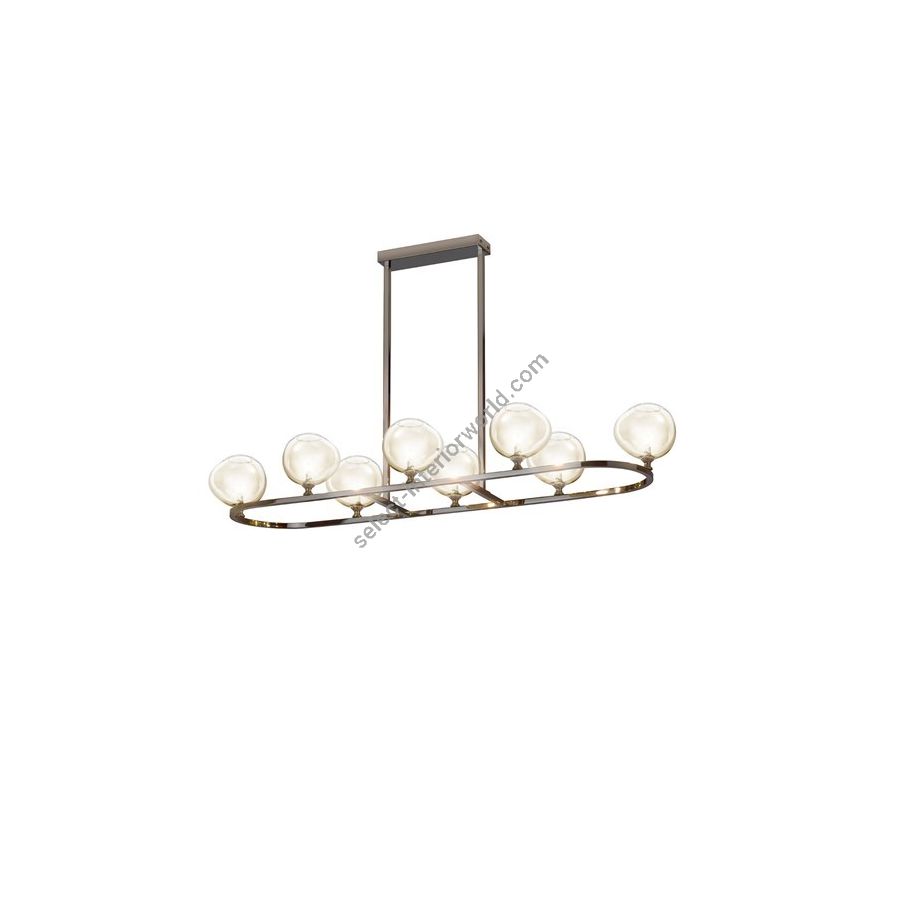 Black nikel Chandelier with honey pyrex spheres. Lighting item that diffuses the light with great effect in the surrounding environement creating a warm and welcoming atmosphere.