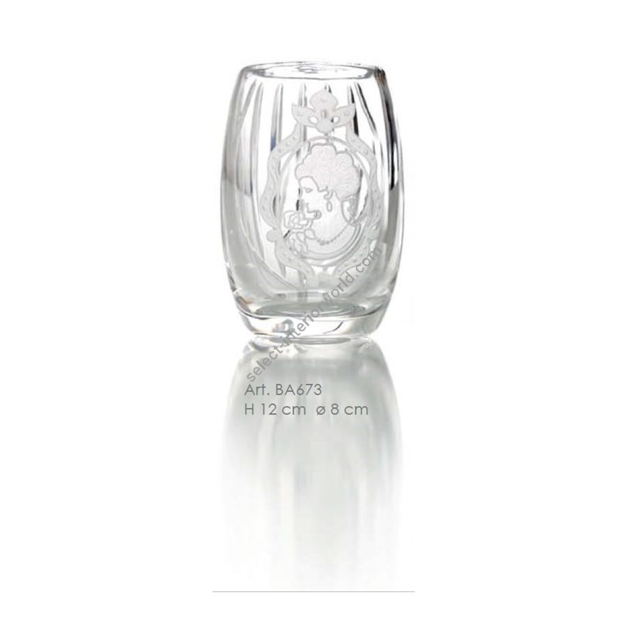Toothbrush holder in clear Italian crystal with hand-carved lady portrait cameo. Functional elements that create an extremely elegant, welcoming and high-value bathroom.
