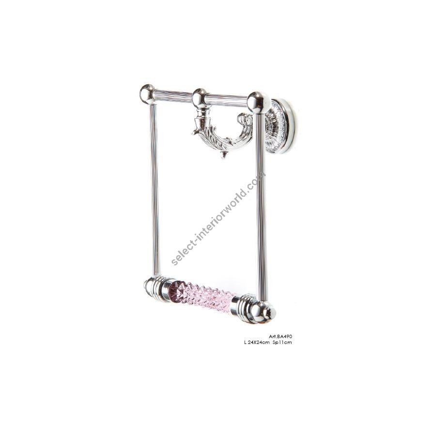 Square Towel Holder in brass and pink italian hand-cutted crystal. Functional elements that create an extremely elegant, welcoming and high-value bathroom.