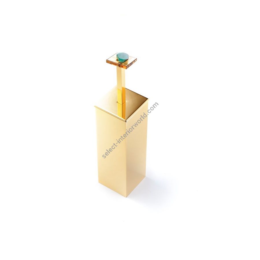 Toilet brush in gold 24K with amber glass and green Agate medallion. Functional elements that create an extremely elegant, welcoming and high-value bathroom.