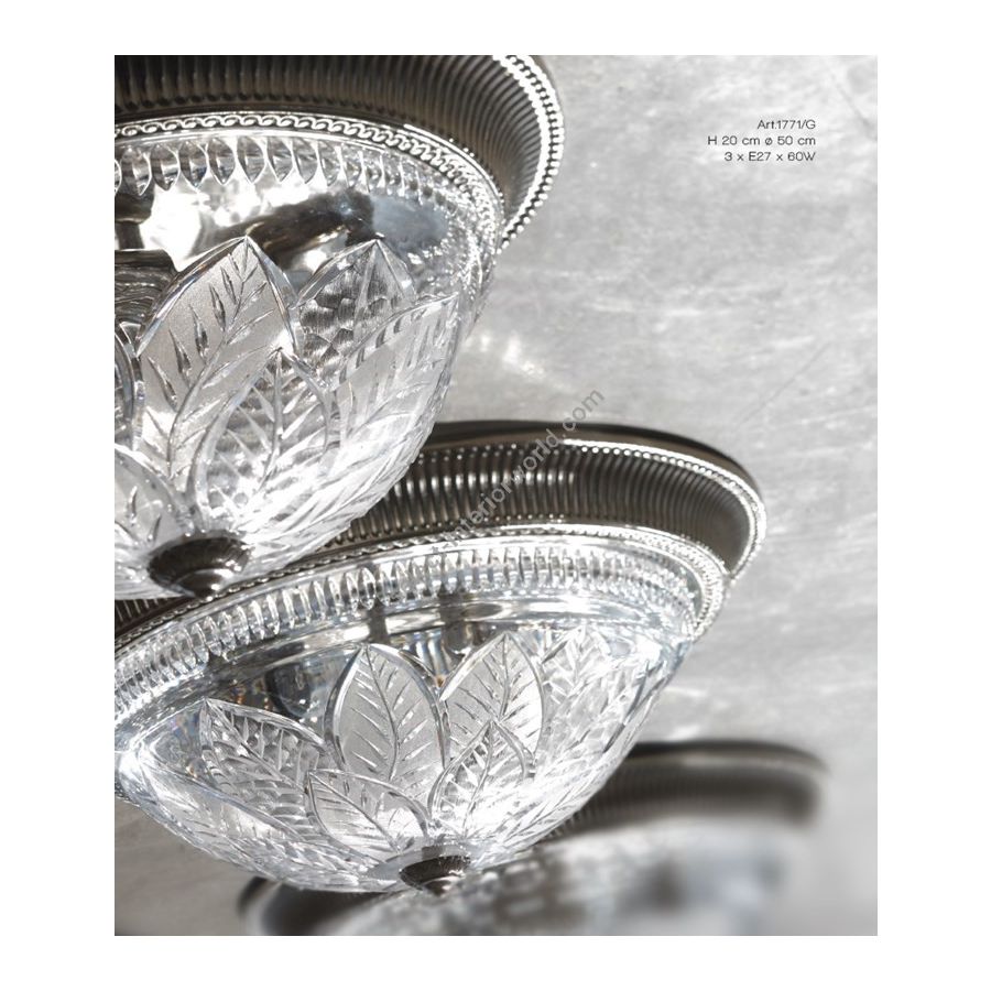 Set opale Ceiling Lamp in Florentine Crystal cut by hand. Lighting item that diffuses the light with great effect in the surrounding environement creating a warm and welcoming atmosphere.