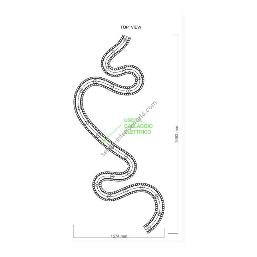 Snake ceiling lamp with transparent trihedrons Murano Glass.