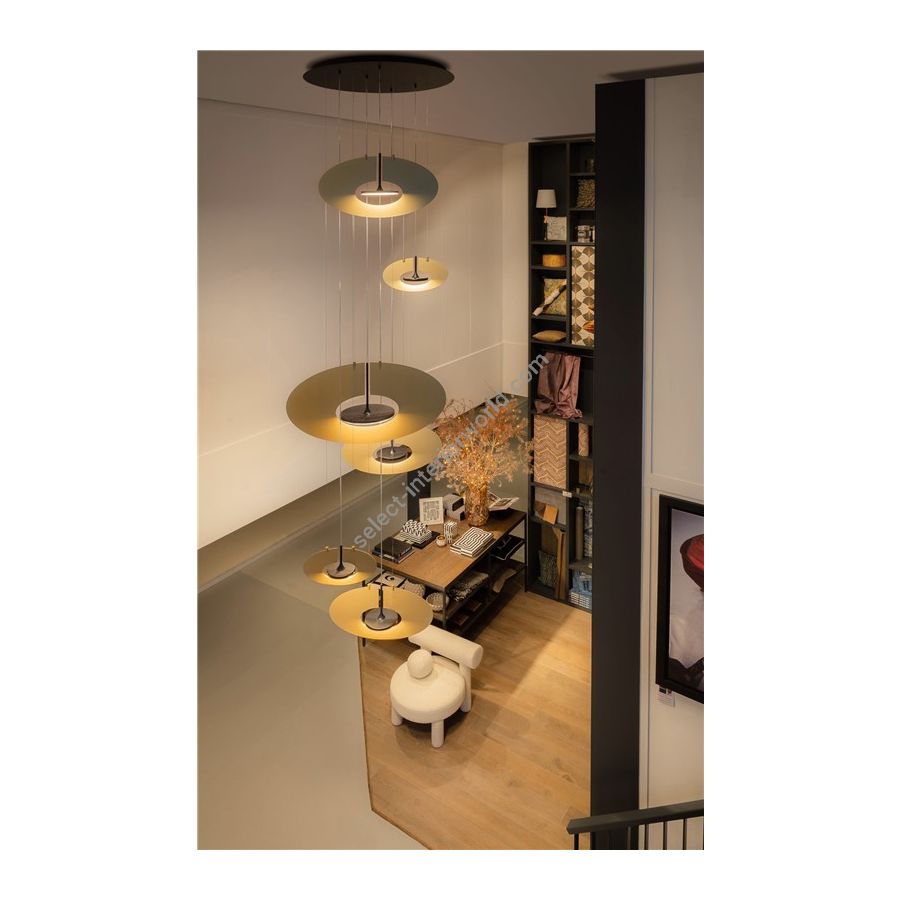 The design of the Eye in the Sky is stylish, minimalistic and completely balanced. This luminary is a real asset for both modern and classic interiors. The oval discs are made of premium anodized aluminum, either in matt gold or matt silver. The collection includes various lighting designs, including ceiling fixtures which are customisable in layout and quantity, and gorgeous floor luminaires.