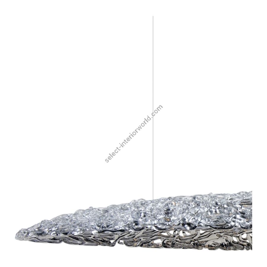 The luminary is made of the finest Italian glass, and handmade out of one continuous piece. Therefore, every lighting fixture is individually tailored, making them unique. It is a handmade piece of art, made with the utmost precision and care by skilled craftsmen. It has a serene appearance, while granting endless points of view to discover.