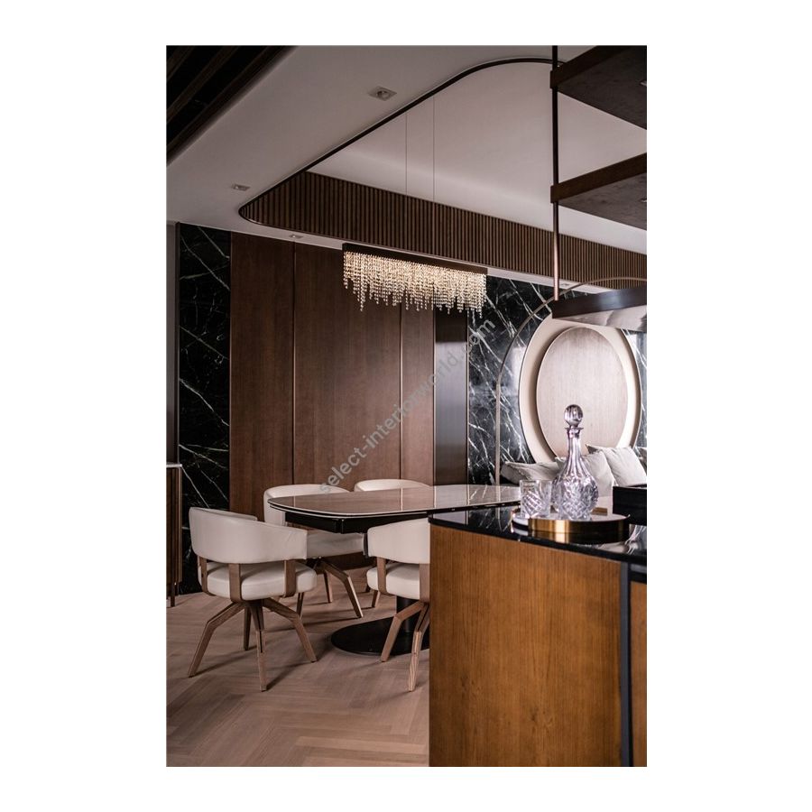 The Frozen Eyes collection brings an elegant combination of metal and crystals, which creates the associations of a waterfall. The design is best described as simple and chic. The Frozen Eyes collection is robust and eye-catching. It is a linear yet abstract design, of which the presence can illuminate a room with a beautiful shimmer. There are many possibilities regarding the Frozen Eyes collection. These include various chandelier designs, as well as wall fixtures. Each collection piece is crafted with the utmost care and precision, resulting in a beautiful finish each and every time.