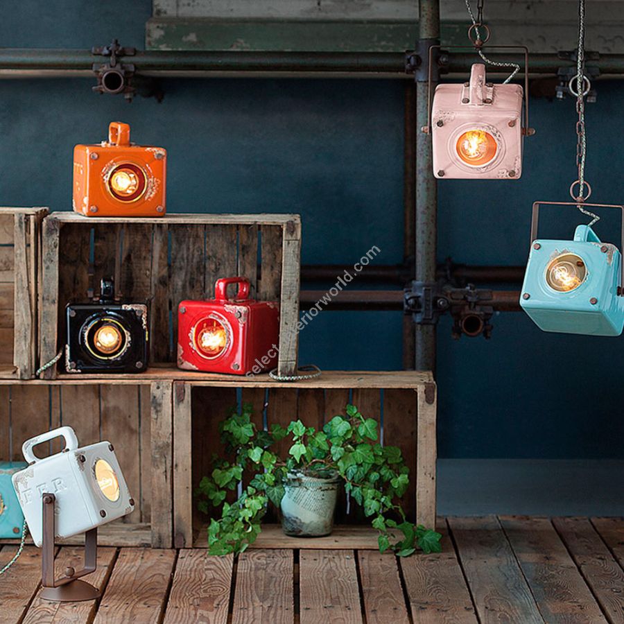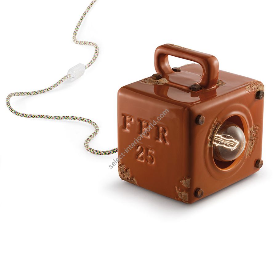 Bright colors, glossy surfaces and refined signs of the time, for a current profile in the guide of another one that is past. The screws, with cor-ten finish, are the detail that completes this table lamp, giving it fully industrial taste.