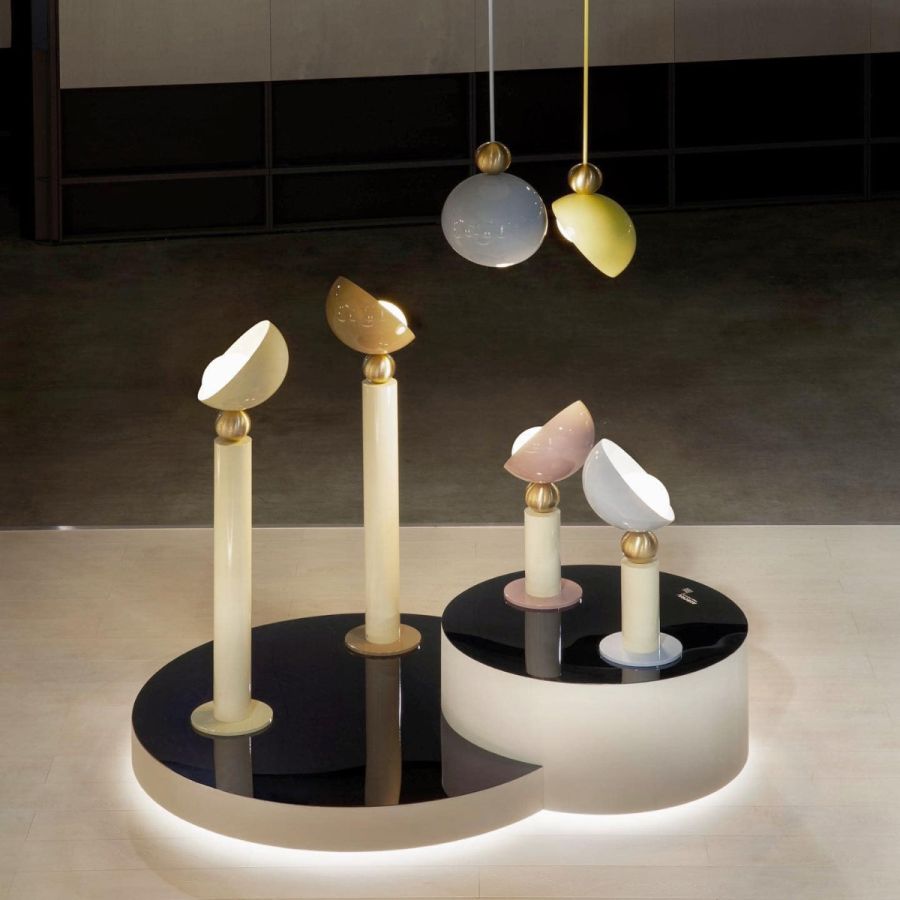 Aurora is an eclectic and colorful collection. A multifaceted soul with a seductive retro allure, Its naming alludes to the light that takes over the sky just before sunrise, and the finishes recall the colors of early Italian industry. Available in every versions, it includes floor, table, ceiling, suspension and wall solution.