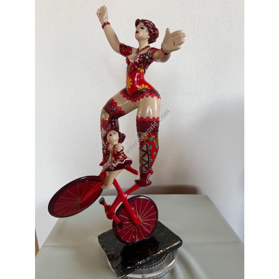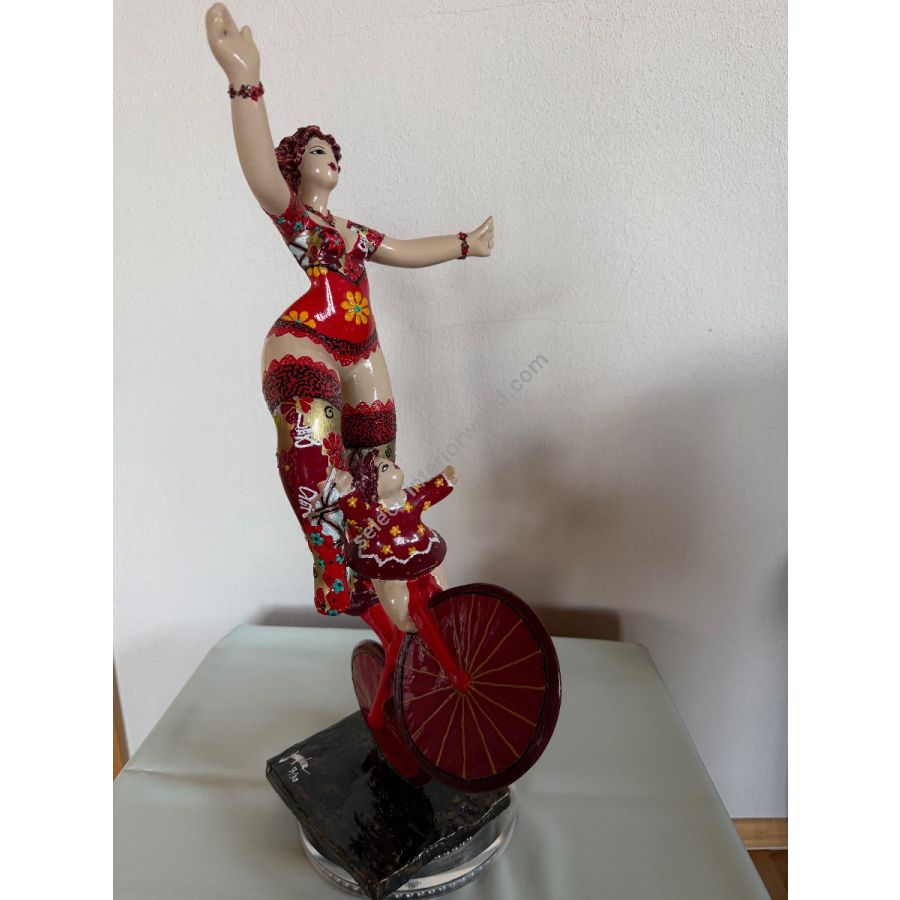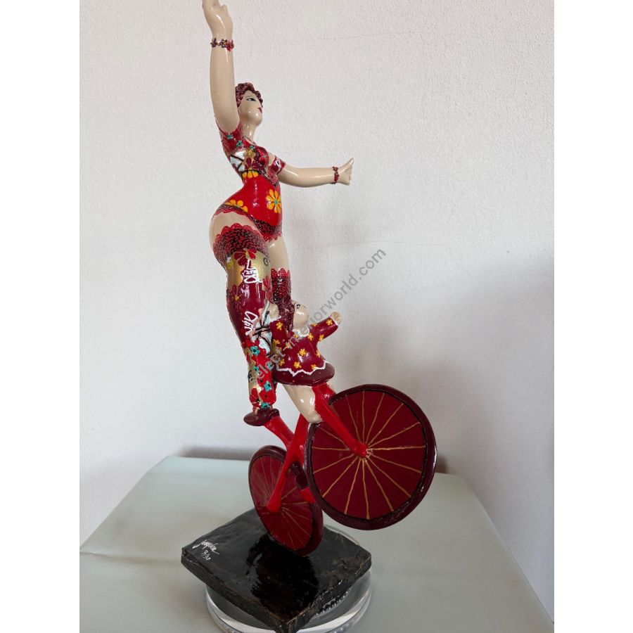 Les Équilibristes is a vibrant sculptural work created in 2007 by the renowned French sculptor JOSEFA at her studio in France. The dynamic composition depicts a balancing female figure performing on a bicycle while accompanied by a child, capturing a joyful moment of movement, trust, and playful equilibrium.