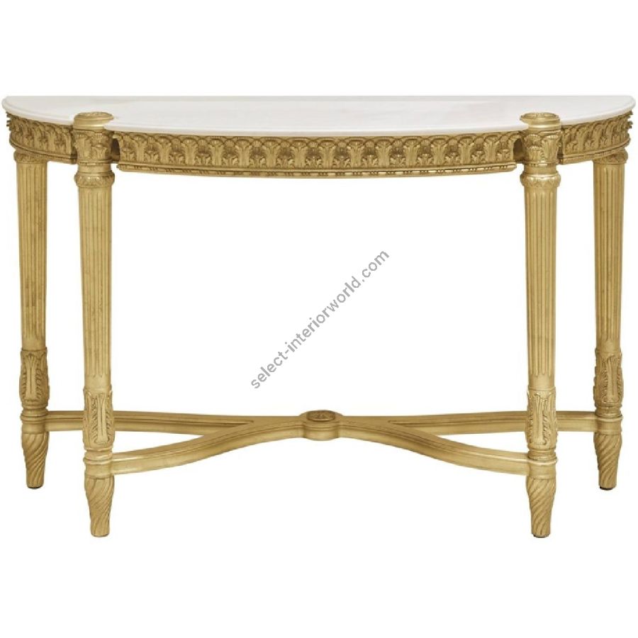 All the splendour of the French style in the Boulevard collection, featuring the presence of hand-made carvings, embellished with gold leaf finishing. The console of the line is embellished by a decorative cross and it presents a top in white Namibia Rhino marble. A graceful and precious piece of furniture, the expression of a refined and decorative luxury.
