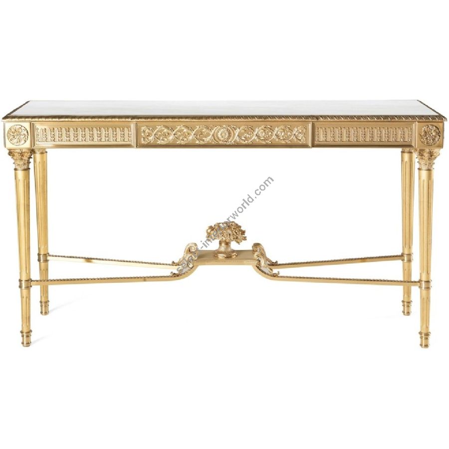 Perfect expression of manual and artistic skill, Shogun is made of brass with lost-wax cast brass details. The piece of furniture is characterized by finely carved legs with gold finishing and a cross that ends with an elegant central cup. The top completes the ensemble adding a touch of elegant refinement.