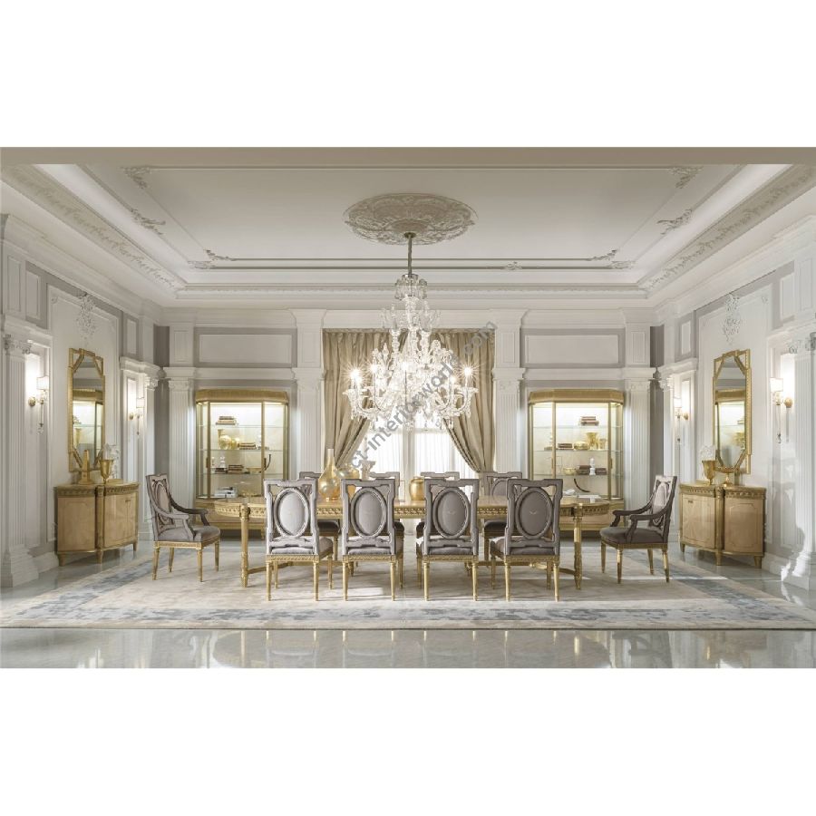 All the splendour of the French style in the Boulevard collection, featuring the presence of hand-made carvings, embellished with gold leaf finishing. The protagonist is frise maple wood, with ray-of-sunshine inlays and brass inserts. Boulevard looks graceful and precious, the expression of a refined and decorative luxury.