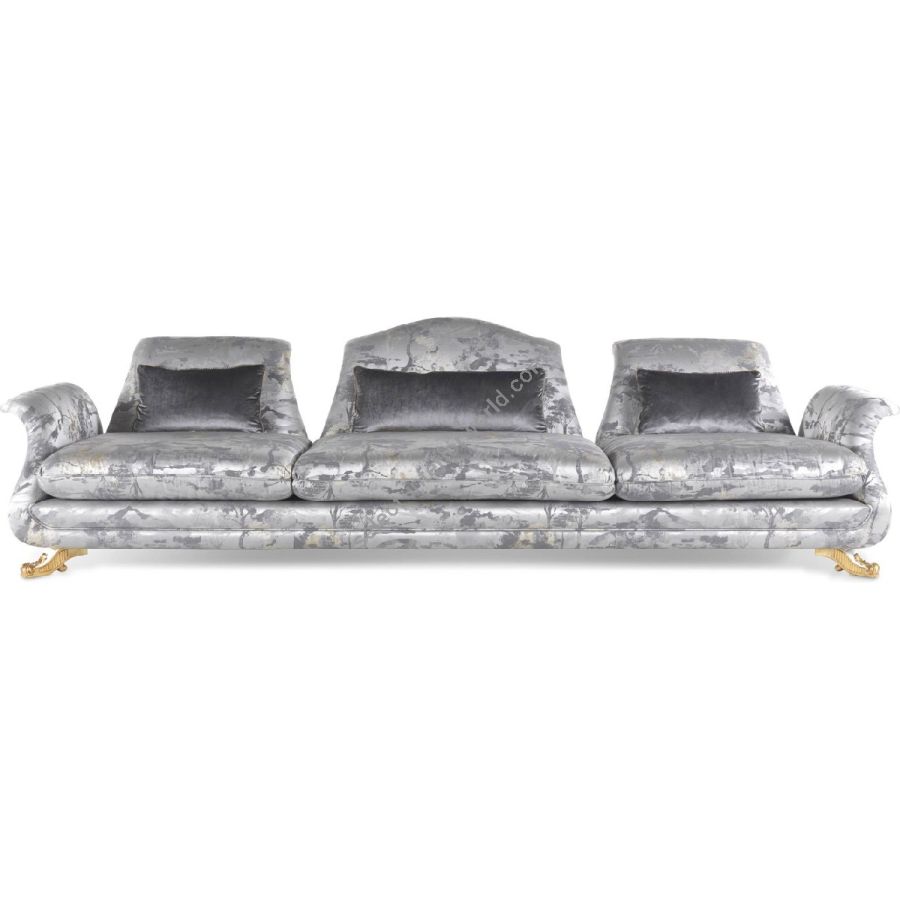 Troisplaces is an original seats line characterized by a complex manufacturing in which the curved back creates three different elements. The precious upholstery and the classic feet in gold leaf with lacquered contrast complete the whole making the Troisplaces sofa the perfect complement for the living room.