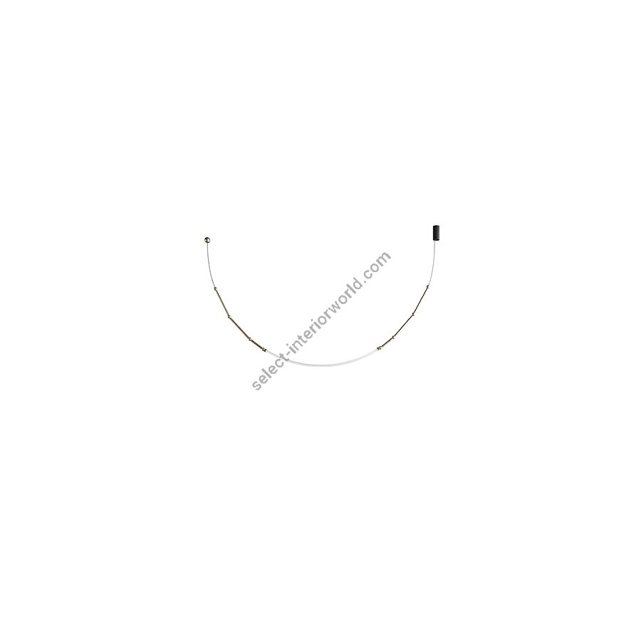 The lamps in this collection alternate between cylindrical bars and small spheres of anodized bronze or black aluminum, arranged like pearls in a ring on a wire supporting LEDs encased in a transparent, flexible silicone tube.