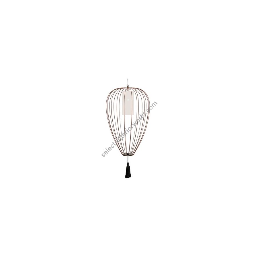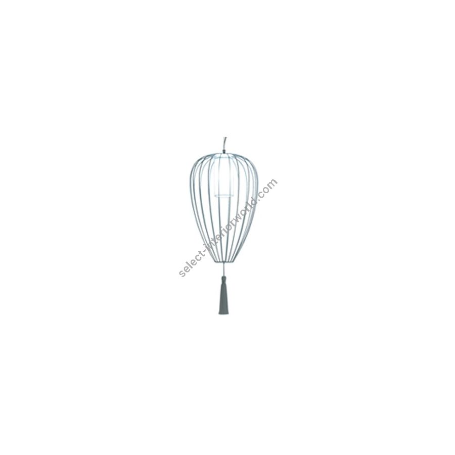 Cell emulates the structure and spirit of Chinese lanterns in the form of a pendants or floor lamps.The lampshades are made of glowing linen hearts for indoor use and opalescent plexiglass for outdoor use. The lamp is completed with a white silk tassel or, in the bronze version, a black silk tassel.