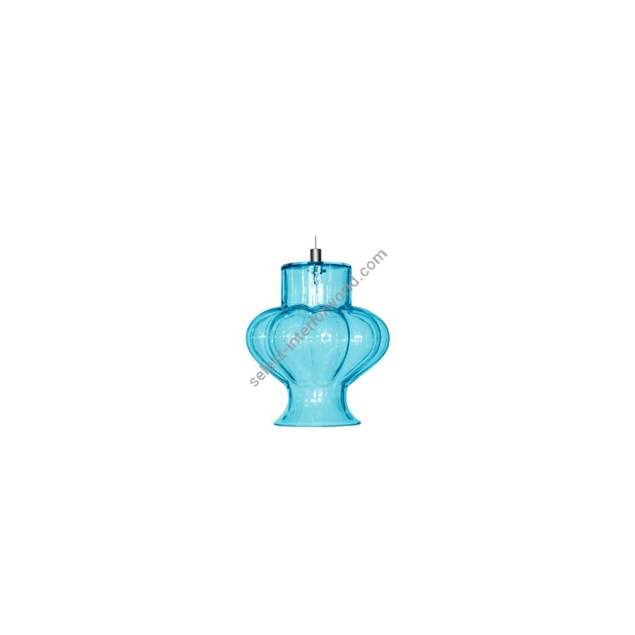 Like a chorus of bells or a bouquet of spring flowers, Ceraunavolta mixes 12 different lampshades, each with its own special treatment and decoration. These lampshades are made of transparent or polished blue Tiffany glass, using the original molds from the 1970s.