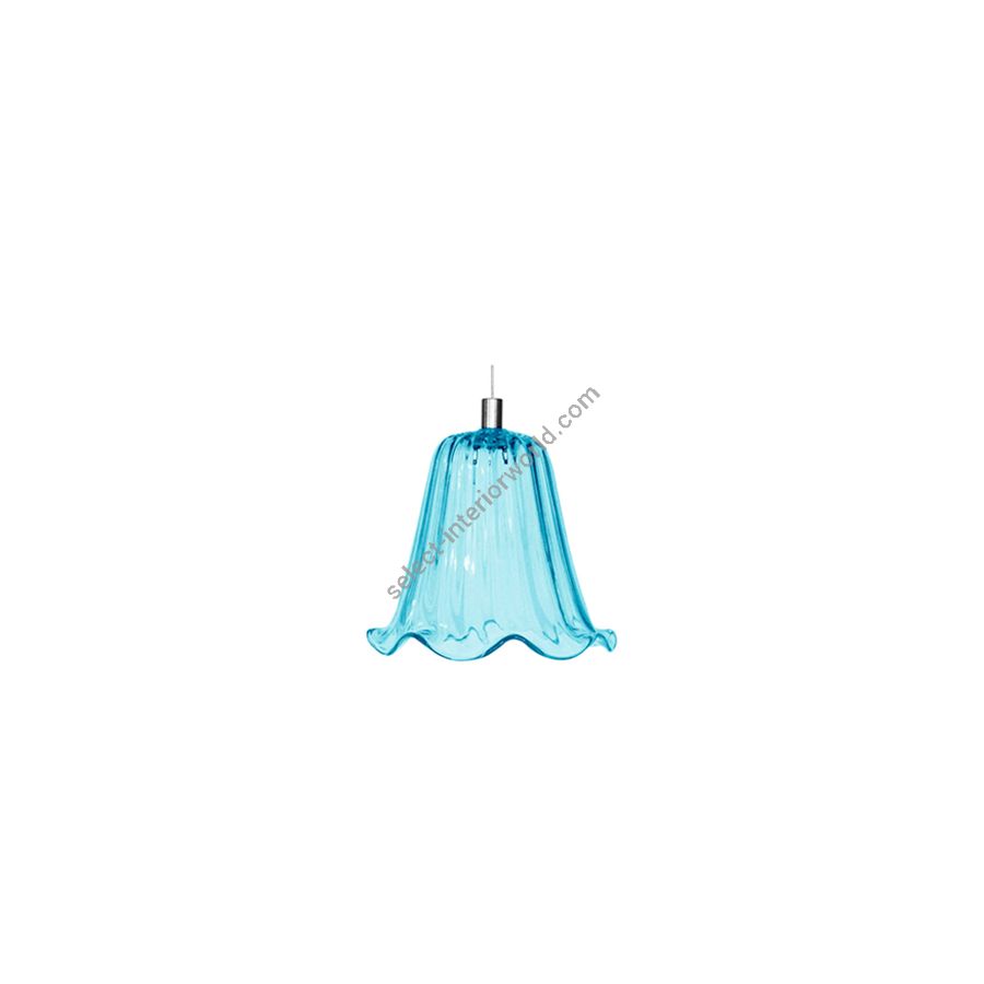 Like a chorus of bells or a bouquet of spring flowers, Ceraunavolta mixes 12 different lampshades, each with its own special treatment and decoration. These lampshades are made of transparent or polished blue Tiffany glass, using the original molds from the 1970s.
