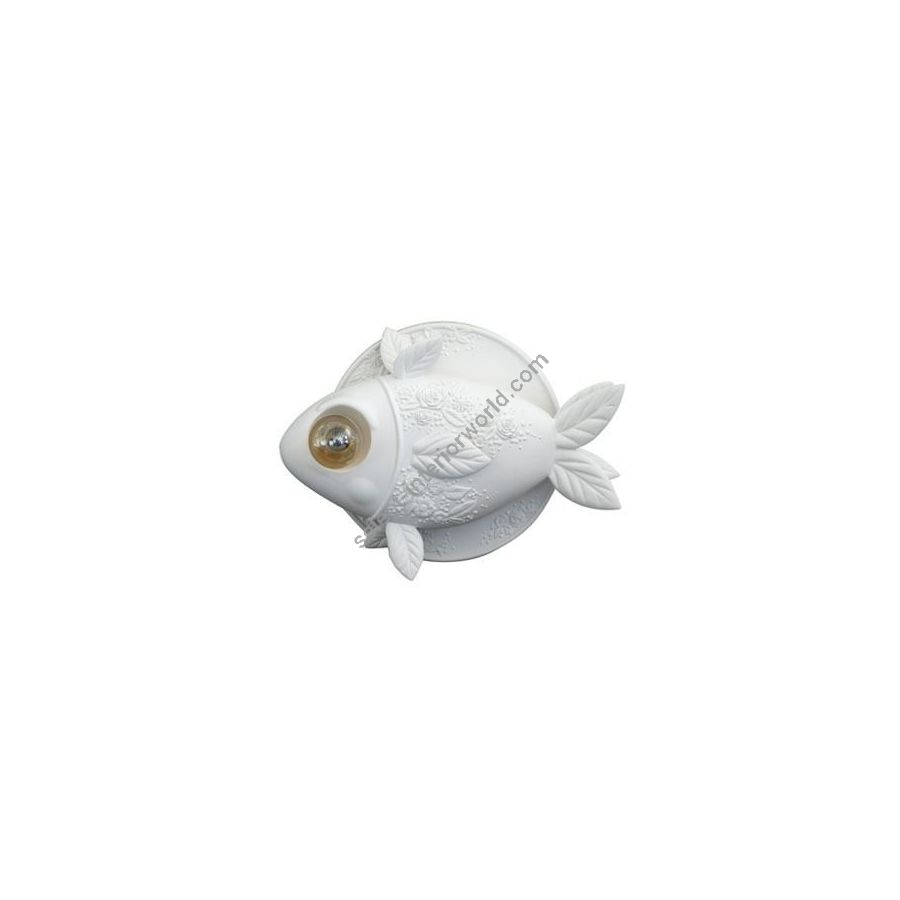 An "April Fools" applique by Karman in which the opaque white ceramic takes the form of a fish with glowing eyes. In Karman’s "Zoo" collection, April features floral decorations celebrating spring.