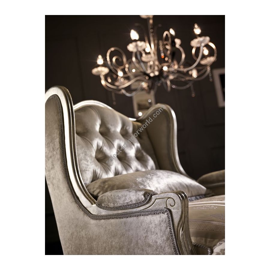 Hand-finished beechwood structure. Non-deformable polyurethane foam cushion. Seat and backrest cushions with goose feathers. Golden, silver or copper leaf is available upon request at extra charge. An additional price is to be paid for the capitonné upholstery buttoning model as indicated in the price list.