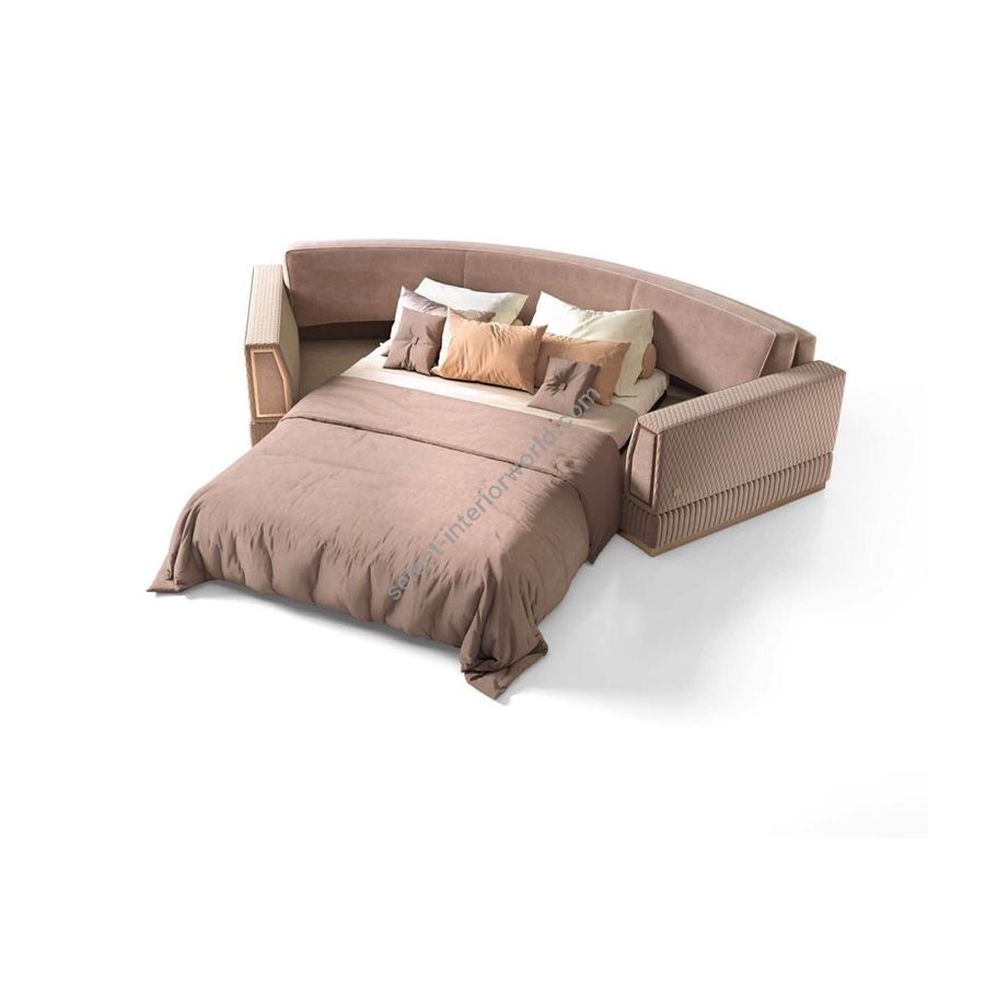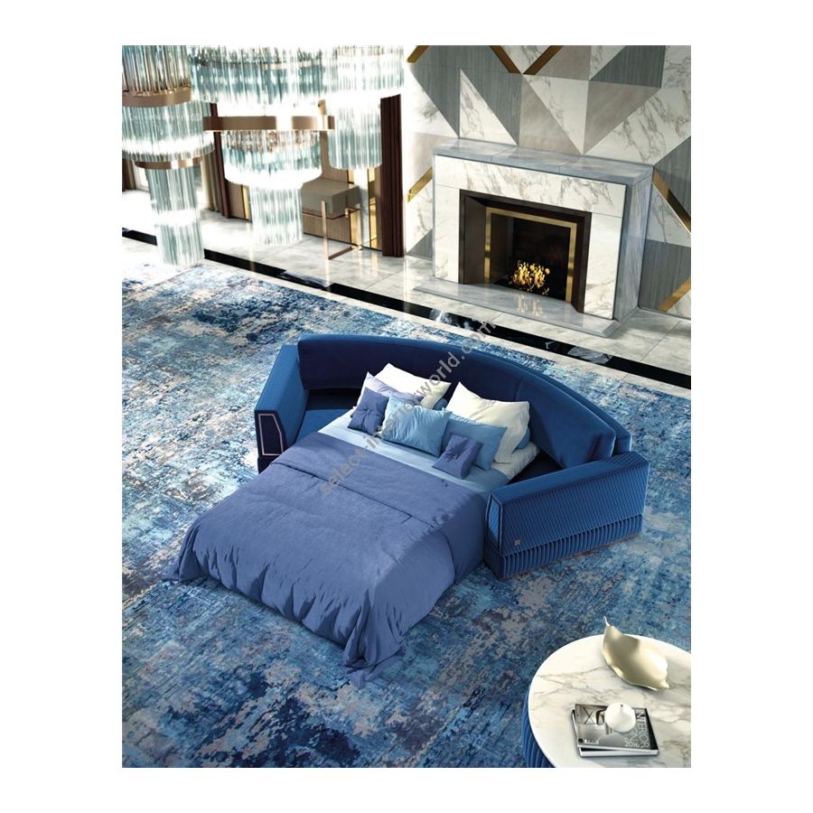 Sofa with a partially removable covering in fabric version. Structure in fir wood and poplar multi-layer. Padding made from non-deformable polyurethane foam with different levels of density. Seat cushion with springs and SOFTSYSTEM technology . The base and the steel front panels are standard. Instead, for different metal finishes, please consider the increase according a price list. This model is available with bed mechanism , with mattress of 11 cm in non-deformable high-density polyurethane , covered with a removable and washable lining with aloe treatment. The quilted parts should be considered as an accessory and increased according a price list.