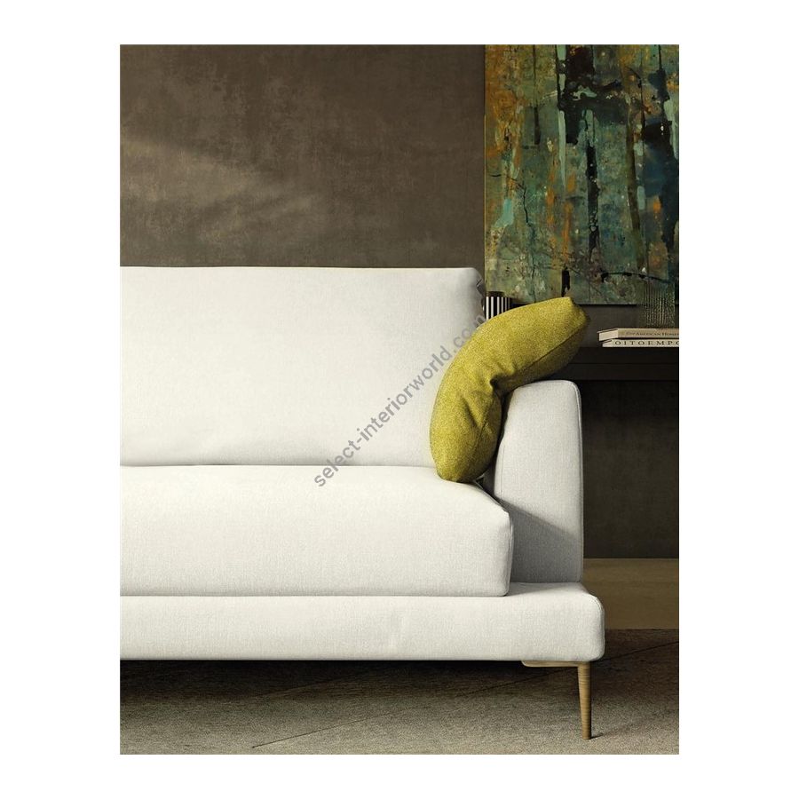Completely removable sofa in fabric version. Structure in fir wood and poplar multi-layer. Padding in non-deformable polyurethane foam with different levels of density. Seat cushions with springs and SOFT-SYSTEM technology. Backrests and side cushions padded with goose feather. Stainless Steel feet of sofa col chrome shiny or matt are included in the price. Instead, for all other metal finishes, please consider the increase according a price list.