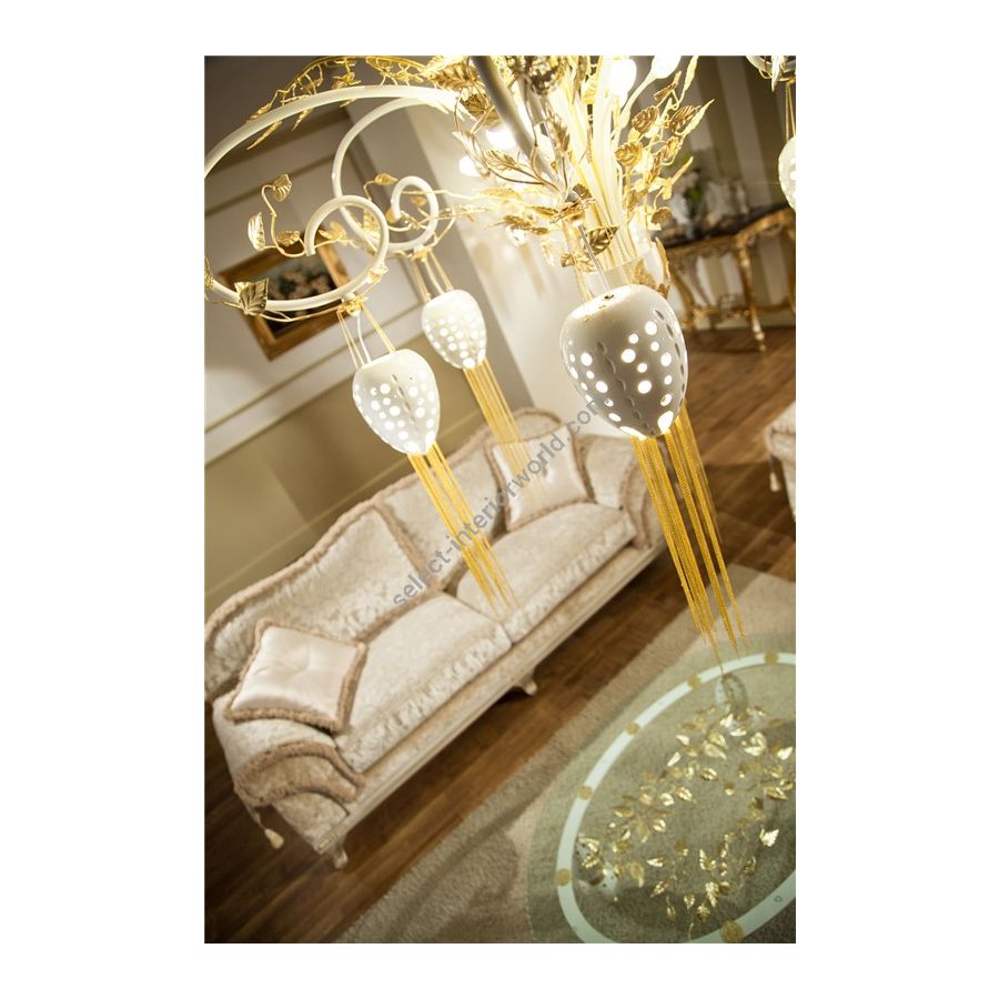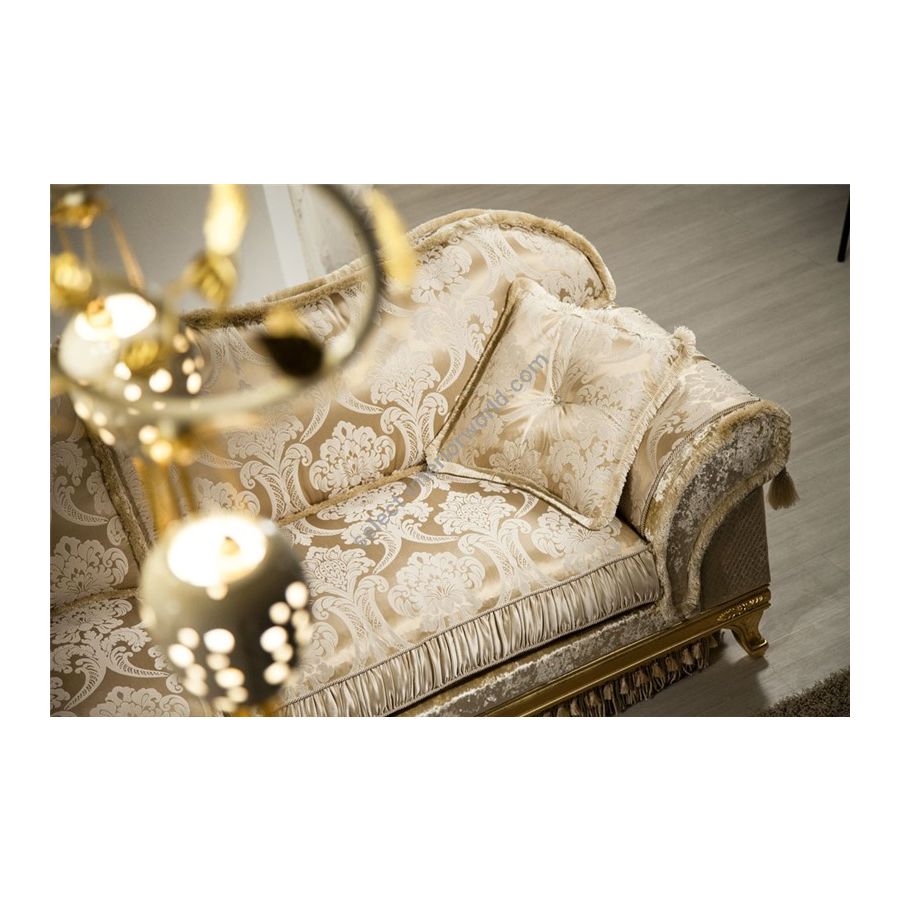 Harmony and sophistication match elegance and luxury in a collection of sofas, sofa-beds and armchairs boasting rich fabrics which are unique for their soft touch and warm shades embellished with classic floral motifs. Decorative features, bows, frills and skirts, all customize the whole in a harmony of fabrics, colours, refined and unique decorations.