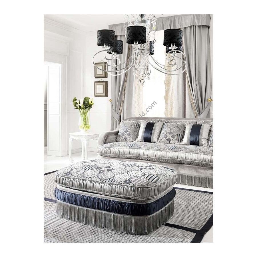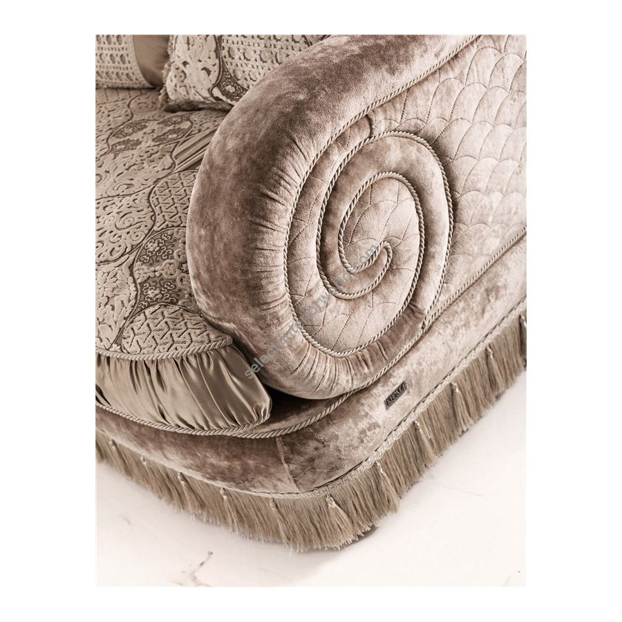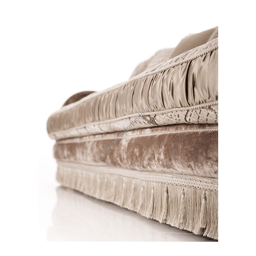 Sofa partially removable. Frame in fir, poplar plywood and beech inserts. Padding in polyurethane foam of different densities. Seat cushions in goose down and soft, with SUPER-SOFT-SYSTEM, reversible. Choice for the finishing of the toothbrush and umbilical classic. Leaf finish for an additional charge. This model is expected to bed version with only the welded series with mattress H 11 in highdensity polyurethane foam with 50 shell Aloe removable and washable.
