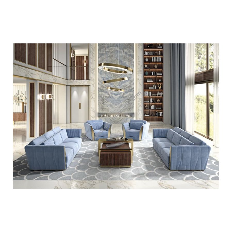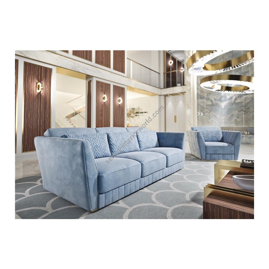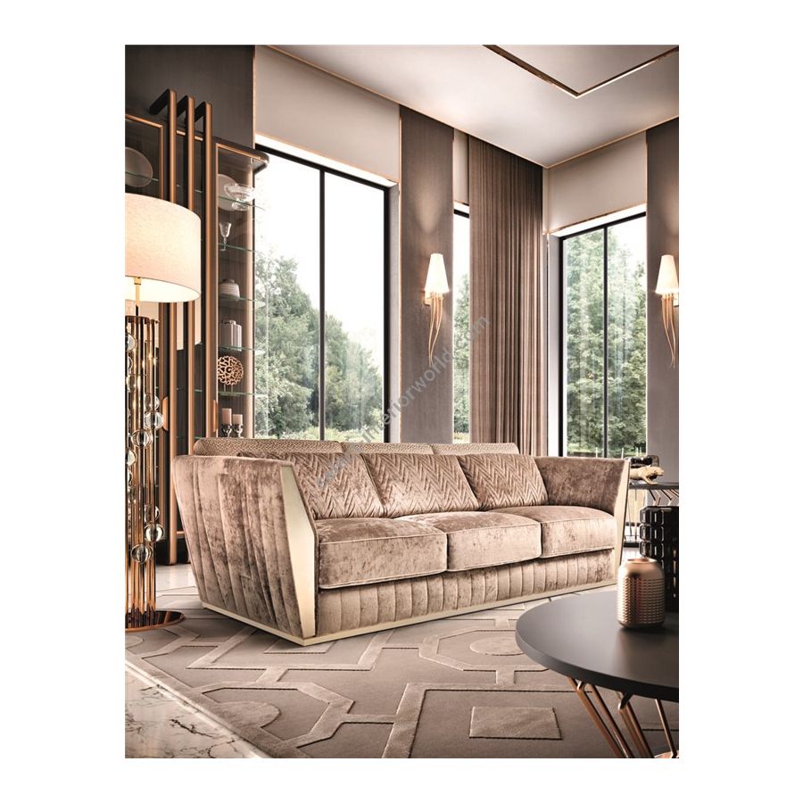 Sofa with partially removable covering. Structure in fir wood and poplar multi-layer. Seat cushion with springs and SOFT-SYSTEM technology. The padding made from non-deformable polyurethane foam in different densities. The steel base and front panels are standard. Instead, for the particular finishes, please consider the increase according a price list. This model is available with bed mechanism, with mattress of 11 cm in non-deformable high-density polyurethane, covered with a removable and washable lining with aloe treatment. The quilted parts should be considered as an accessory and increased according a price list.