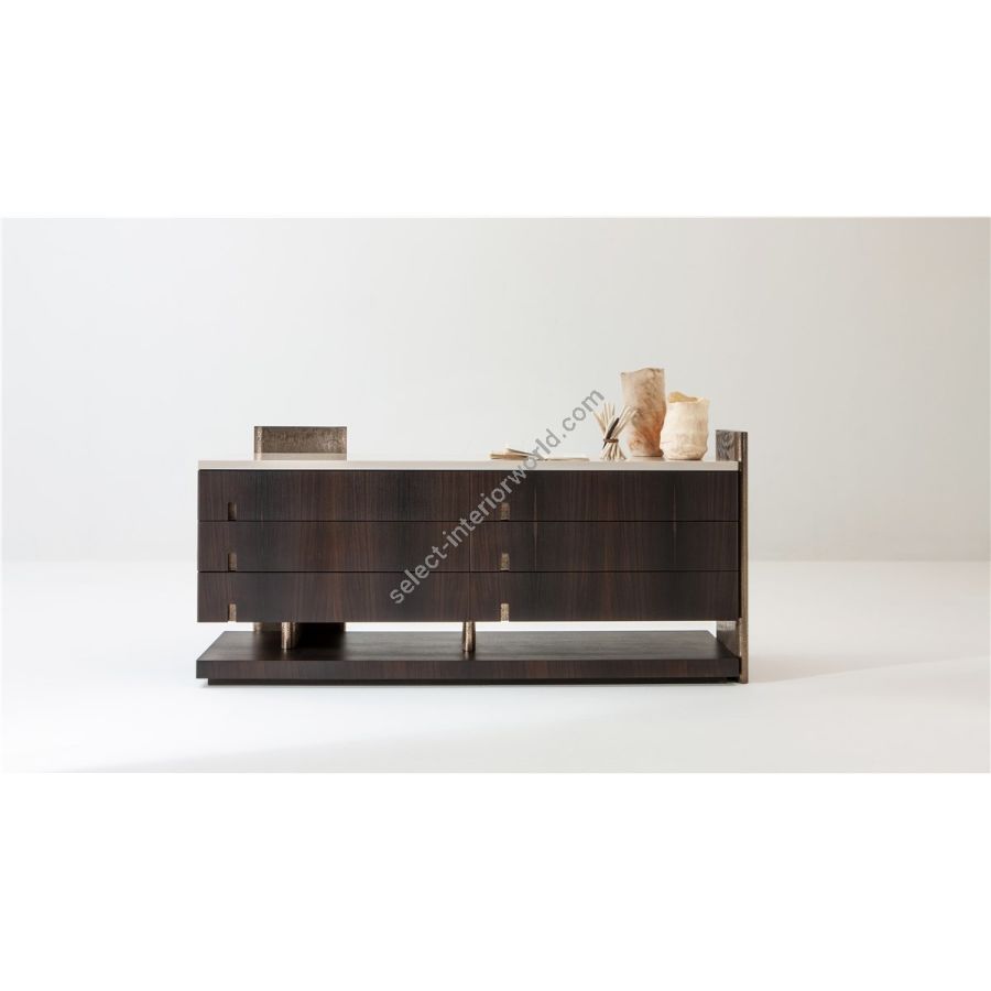Structure and drawers in Termocotto oak, top in glossy lacquered wood, side, back and handles with bronze “Liquid Metal Raptor” finish.
