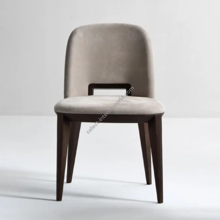 Padded chair with wooden structure and seat in expanded polyurethane covered in leather, velvet or fabric.