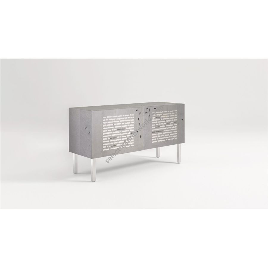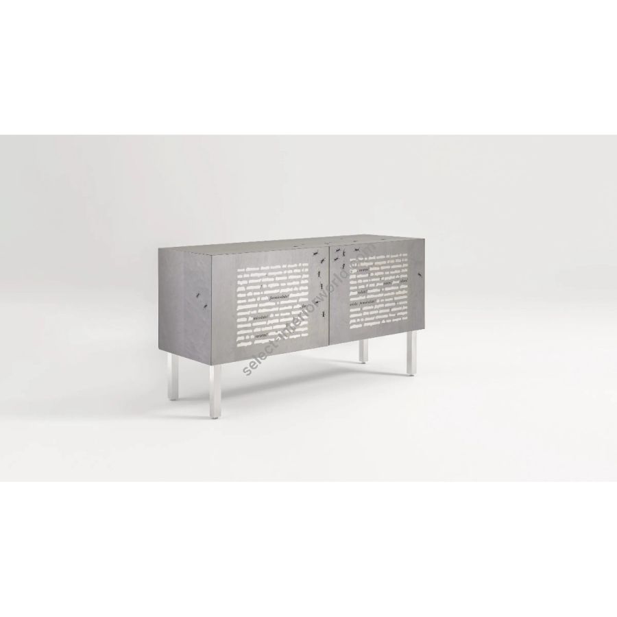 Sideboard with legs and base in brushed metal, inlaid doors and structure. Equipped with push-pull doors and an internal shelf. It is also available in the suspended version.