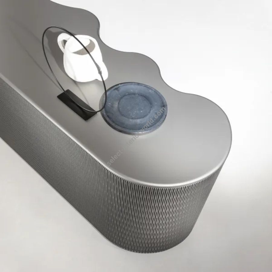 Part of the Infinity collection, this sideboard re-proposes the design of the console, reinterpreting its use and introducing the two hinged and curved doors.