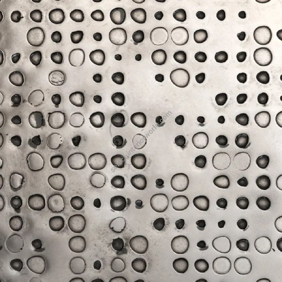 Wooden sideboard with liquid metal doors with Unlimited texture, open compartments with shelves and designer handle in burnished brass.