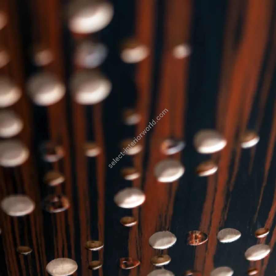 Wooden sideboard with doors decorated with overlapping walnut, ebony and maple veneers carved Unlimited. Top, sides and interior in ebony.