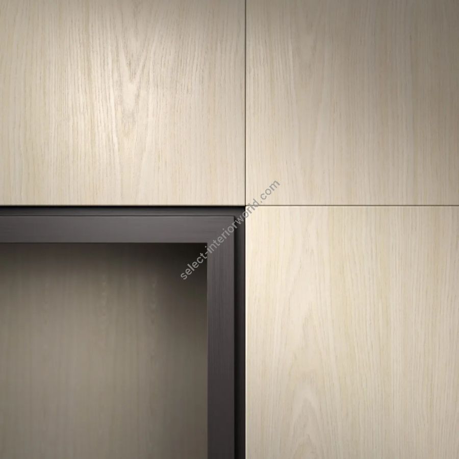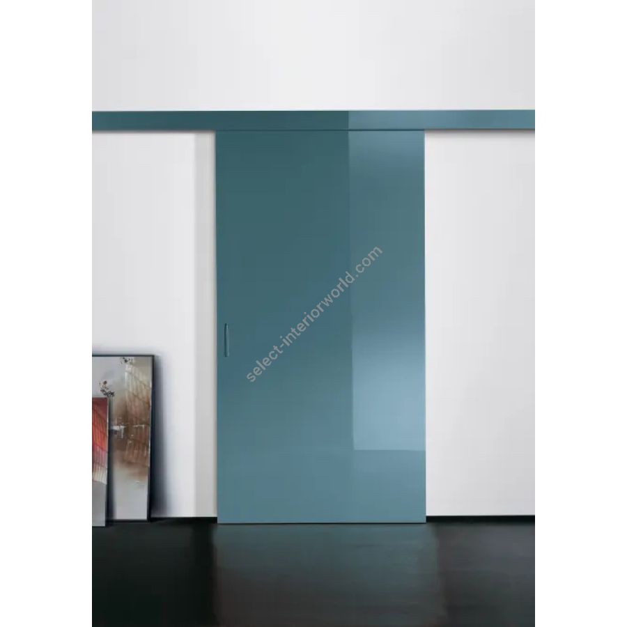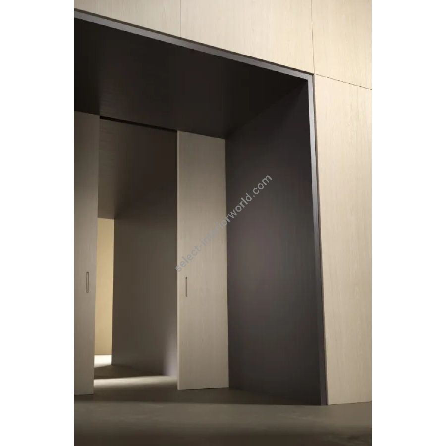 Metal handle carved into the thickness of the door. Available in all the essences of the collection, in lacquered and aniline-dyed wood in all RAL/NCS colours, and in fabric.