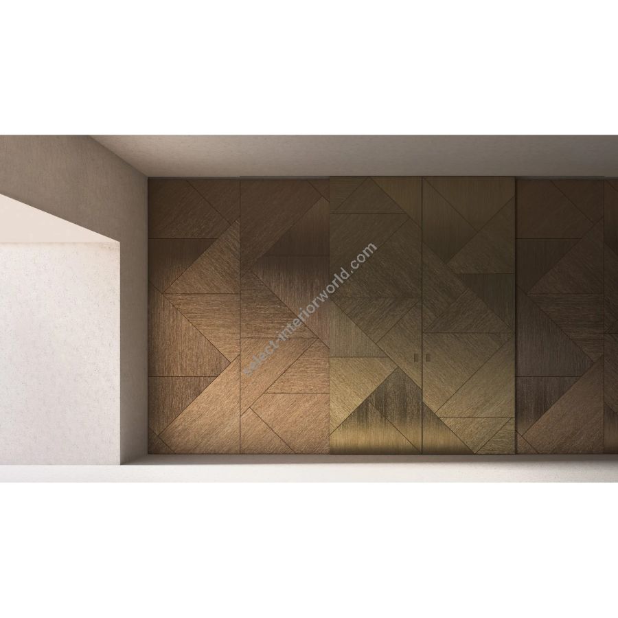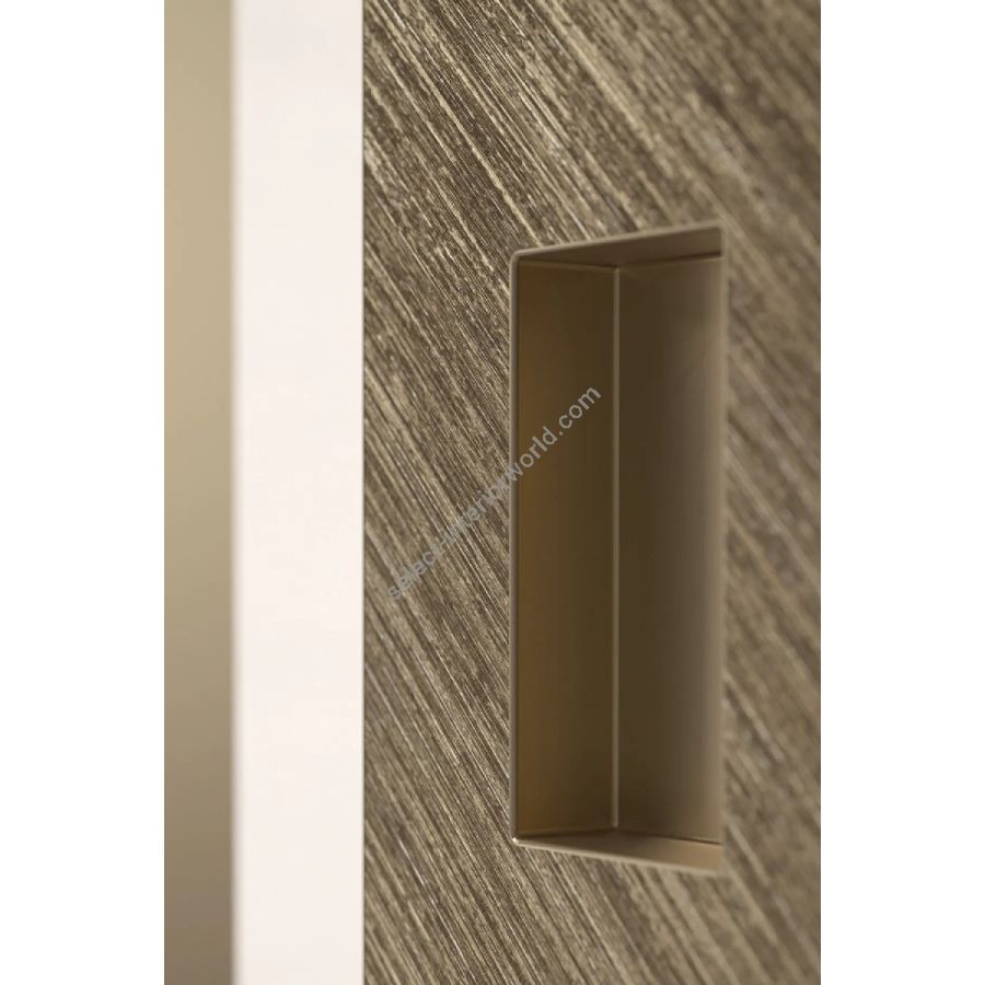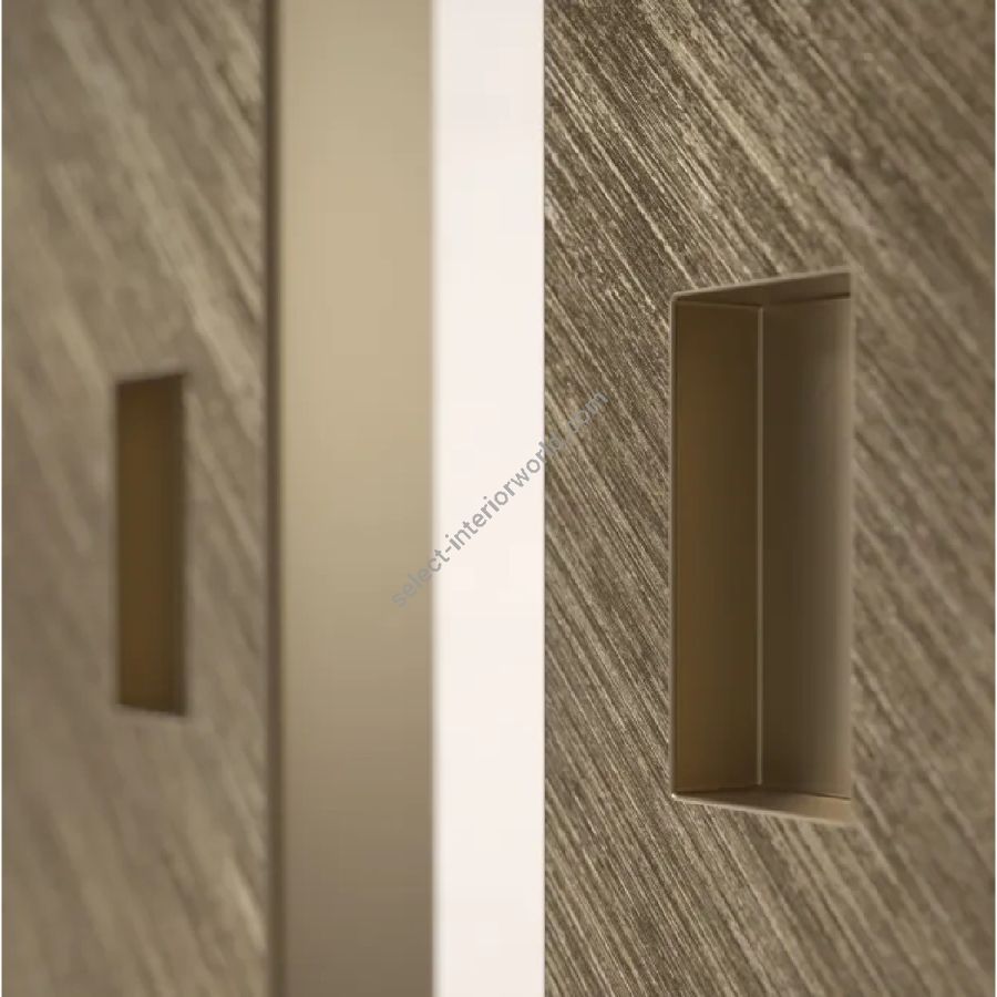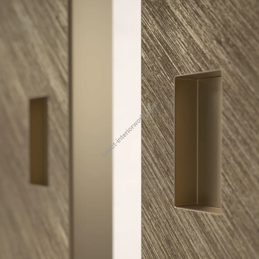 Metal handle carved into the thickness of the door. The Tatami finish is available in Bronze and Anodized Gold, and Silver and Nickel finishes, both in the monochromatic and bichromatic versions.