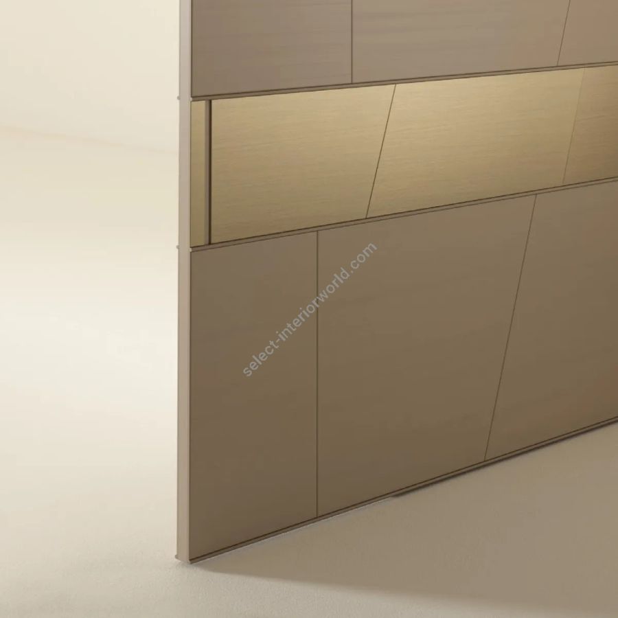 Customizable in all woods of the collection, in special wood, in dyed, aniline-dyed, and brushed matte lacquered wood in all RAL/NCS colours. Also available in satin or burnished brass and in Gommalacca (Shellac).