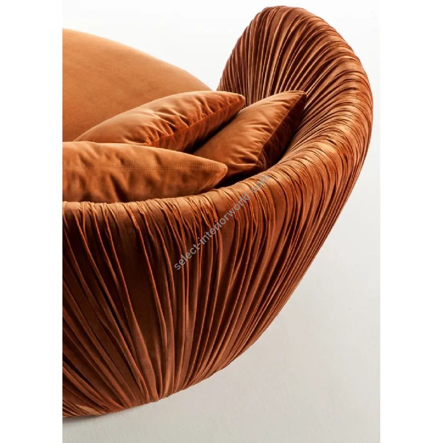 Available in leather, in matt 'Lario' or shiny 'Roxana' velvet or in fabric, and with custom-made decorative cushions.