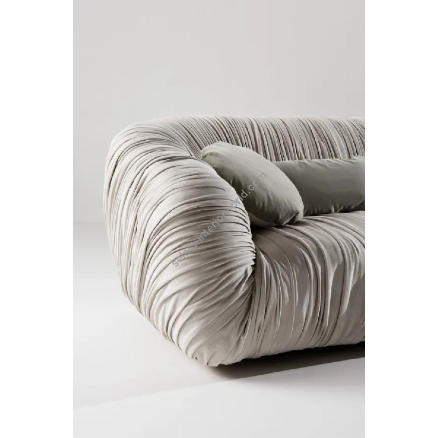 Available in leather, in matt 'Lario' or shiny 'Roxana' velvet or in fabric, and with custom-made decorative cushions.