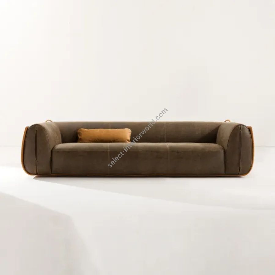 Padded sofa, available in the two or three-seater version, covered in a leather, velvet or fabric tailoring. Equipped with feet.