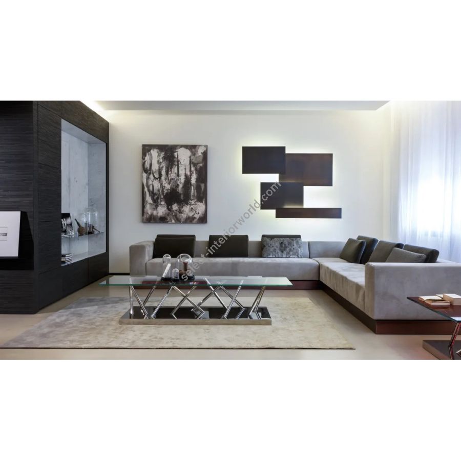 Orchestra System can be customized in leather, in matt 'Lario' or shiny 'Roxana' velvet, and with custom decorative cushions.