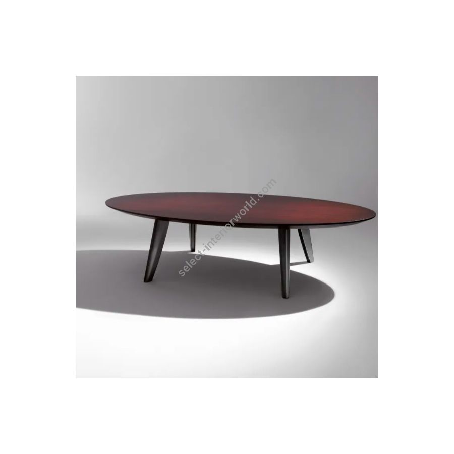 Rectangular, round, square or elliptical table, with wooden top and brass legs with bronze finish.