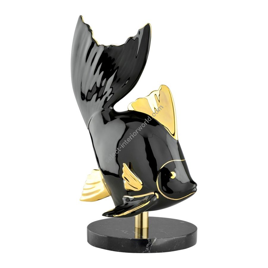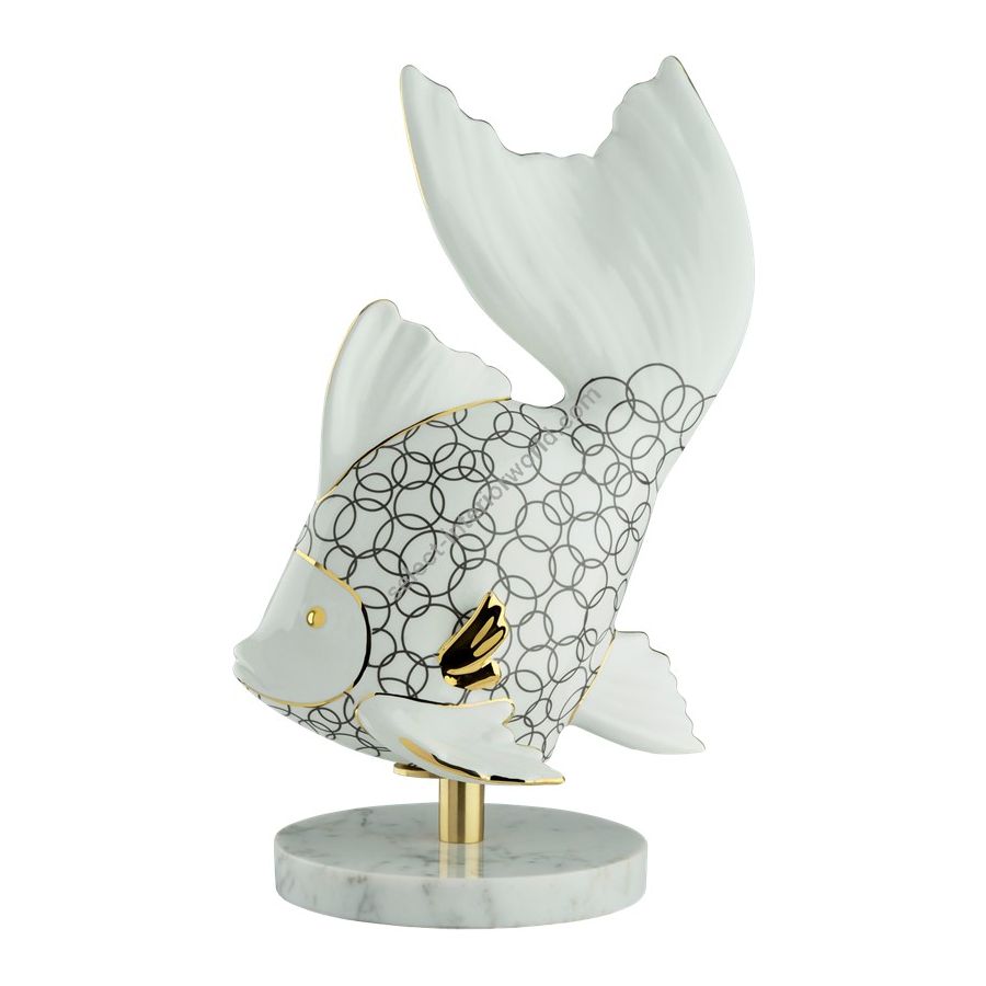 Marble Base High Tail Fish Italian Porcelain 7028 by Le Porcellane, made entirely of porcelain and hand painted. A piece of the elegant and refined "Animali" collection. 100% Made in Italy product.