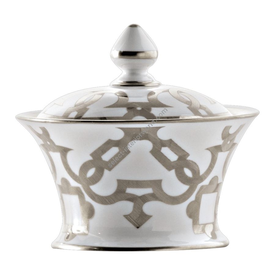 Italian Porcelain Box 5460 by Le Porcellane, made entirely of porcelain and hand painted. A piece of the elegant and refined "Tarsia" collection. 100% Made in Italy product.