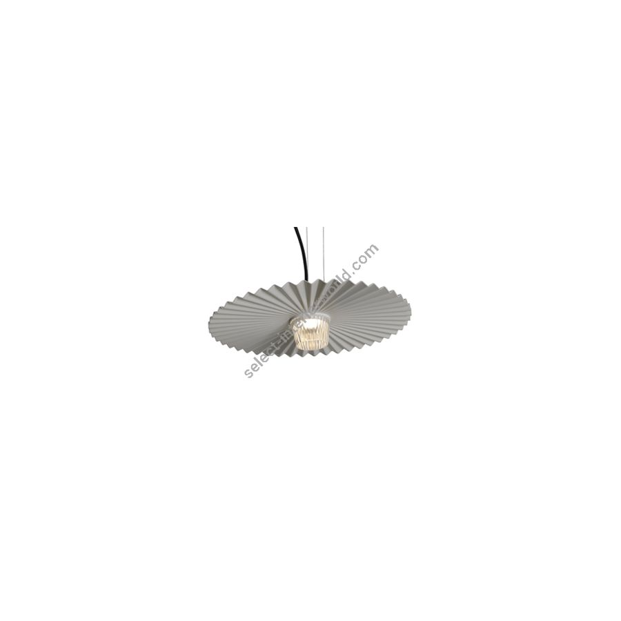 Inspired by the “motif” of ruff collars, the Gonzaga suspension consists of a lampshade in matt aluminum, white or black or with a brass finish, with a particular pleated finish that surrounds a blown glass diffuser.