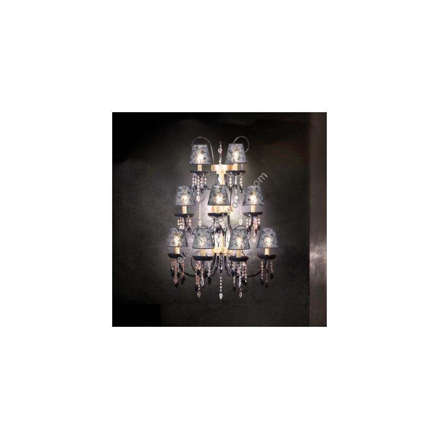 Wall light with crystal pendants, glass croziers and lampshade in various types of fabric. Wall light available in different options