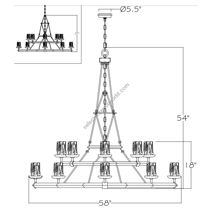 Chandelier executed in hand-crafted metal with extensive component details and articulation, finished in a choice of antique hand-rubbed bronze or platinized silver leaf #860540-2