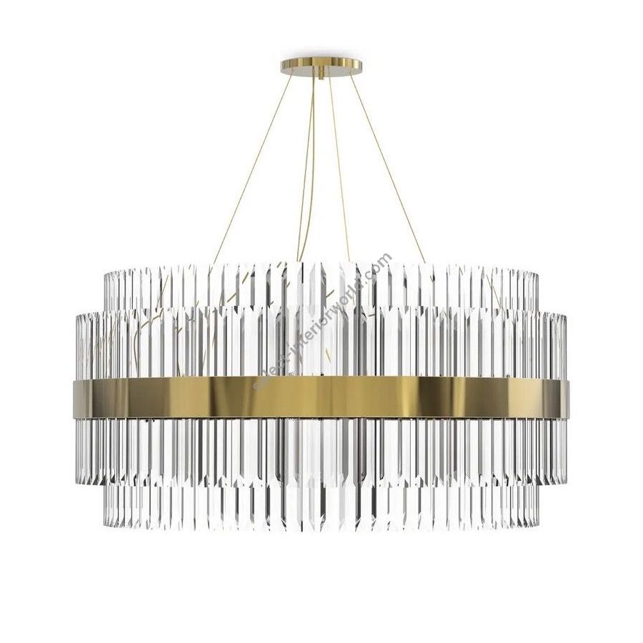 The Liberty Suspension Lamp is an elegant addition to any interior design project, commercial or residential. With its delicate lines, this suspended light elevates any space with its round form and high-end materials, such as brass and crystal glass.