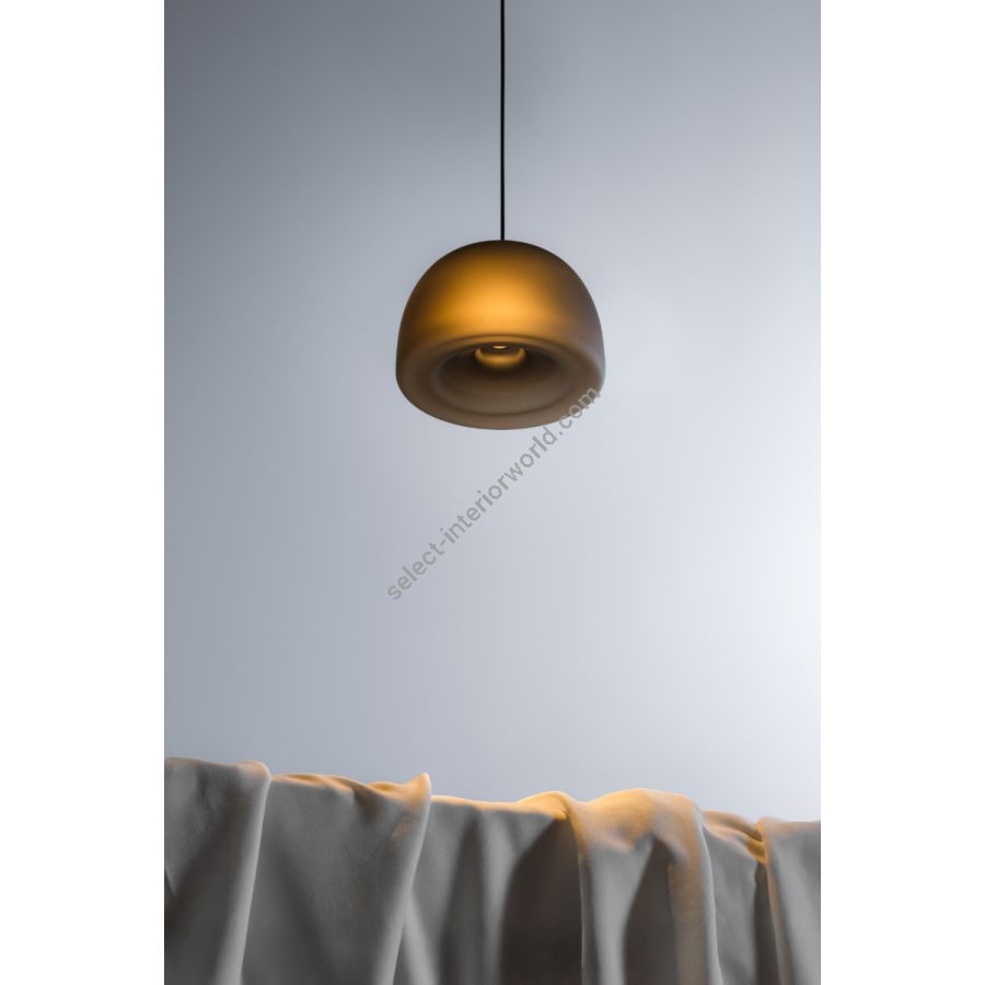 Veiga, designed by Isaac Piñeiro, is a discreet lamp that harmonises light, colour and form with its surroundings. This pendant luminaire offers a point light with excellent luminous qualities, despite the small size of the LED source. Its curved shape and wave-shaped lower cavity create a halo of light that creates a sense of lightness.