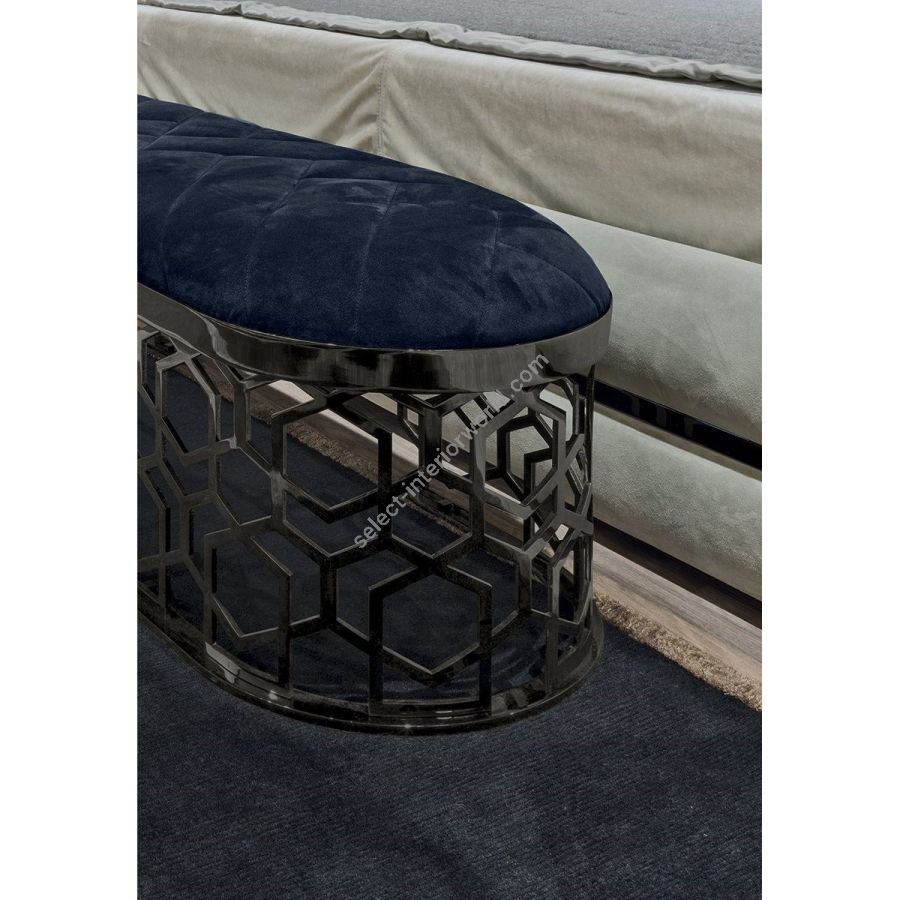 Amanda belongs to a family of accessories with an unmistakable personality due to the “Sequence” decoration on the base. “Sequence” is a perforated pattern that looks like the result of a manual process but is actually the result of a sophisticated laser cutting process. The “beehive” decoration, by Giuseppe Iasparra, is a style, an authentic iconographic pattern that appears on several pieces in the Loveluxe collection - including tables, furniture and boiserie panels. It is an authentic expression of the Longhi personality. This bench is a useful furnishing complement, designed to be provide seating and also give a particular touch to the bedroom.